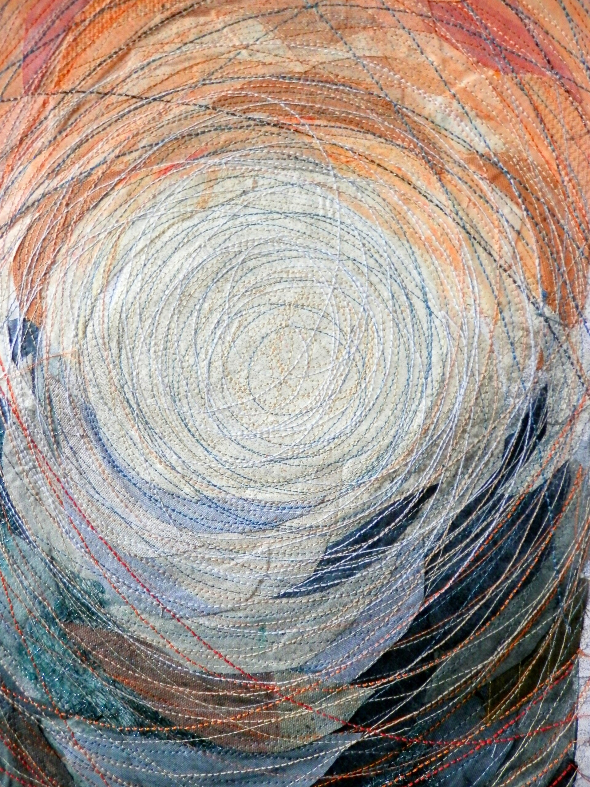 By working with printed and hand-painted fabrics, and by incorporating stitch with broken lines and transitional colours, I hope to create images that may also resonate with those who share our interest