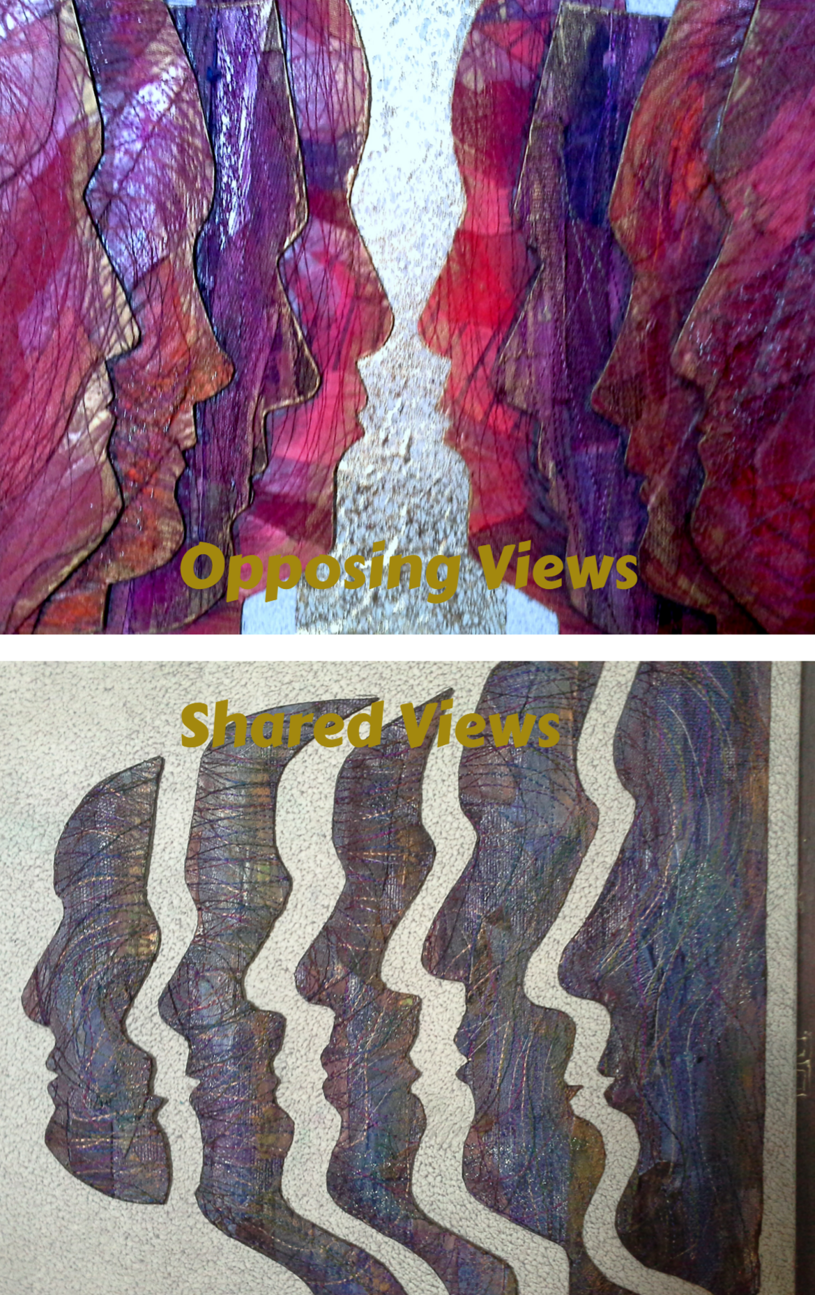 To discover actual TEXTILE ART in later life has been a great revelation to me. Starting with a love of fabric, colour and texture the scope for ones creativity is boundless. From the spark of an idea, the planning of how to develop the process to the finished result - not always quite as anticipated - there is undoubtedly JOY in the making.
